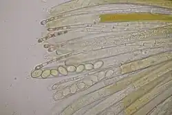 Askospory gładkie, eliptyczne, bez gutuli. Parafizy ampułkowate, ze zwężeniami[4].