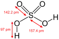 Długości wiązań pojedynczych S−OH wynoszą 1,574 Å, a podwójnych S=O – 1,422 Å, natomiast długości wiązań O−H to 0,97 Å[9].