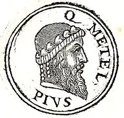Quintus Caecilus Metellus Pius – członek wpływowego plebejskiego rodu rzymskiego Cecyliuszy, syn Kwintusa Cecyliusza Metellusa Numidyjskiego, konsula w 109 p.n.e. Zyskał przydomek (agnomen): Pius w uznaniu dla uczuć okazywanych ojcu, gdy usilnie zabiegał o odwołanie go z wygnania[1], na które ten został skazany w 100 p.n.e. W młodości jako 20-latek towarzyszył ojcu na wojnie w Numidii z Jugurtą. Pretor 89 p.n.e.; jeden z dowódców w wojnie ze sprzymierzeńcami. Pokonał i zabił w bitwie Kwintusa Pompediusza, przywódcę Marsów w 88 p.n.e. W 87 p.n.e. w dalszym ciągu był w armii prowadząc walki przeciwko Samnitom. Doszło wówczas przejęcia władzy przez stronnictwo popularów pod wodzą Mariusza i Cynny. Wezwany został przez senat do Rzymu, gdzie ciesząc się większym zaufaniem żołnierzy niż ówczesny konsul Oktawiusz był wzywany do przejęcia naczelnego dowództwa. Odrzucenie tego żądania spowodowało przejście części wojska na stronę wrogów i Metellus nie widząc szans oparcia się siłom Mariusza i Cynny opuścił miasto i popłynął do Afryki. Zebrał tam znaczne siły i przyłączył się do niego Krassus, który przypłynął z Hiszpanii ale wkrótce obaj wodzowie poróżnili się. W 84 p.n.e.Metellus został pobity przez Gajusza Fabiusza, jednego z dowódców stronnictwa Mariusza. W 83 p.n.e. na wieść o powrocie Sulli z Azji, przyłączył się do niego w Brundyzjum jako jeden z pierwszych nobilów i został jednym z najważniejszych dowódców w wojnie domowej Sulli z popularami. W 82 pokonał ostatecznie wojska Karbona i Norbanusa w Galii Cisalpińskiej. W 80 p.n.e. sprawował konsulat razem z Sullą. W następnym roku udał się do Hiszpanii Ulterior by w charakterze prokonsula zarządzać prowincją i pokonać armię Sertoriusza, stronnika popularów. Pozostał tam przez 8 lat nie mogąc pokonać Sertoriusza. Wysłana została przez Rzymian druga armia pod wodzą młodego Pompejusza. Sertoriusz opierał się jednak nadal i dopiero jego podstępne zamordowanie przez Marka Perpernę w 72 p.n.e. pozwoliło zakończyć wojnę. Po powrocie do Rzymu Metellus odbył triumf za zwycięstwa w Hiszpanii. W 81 p.n.e. został z nadania Sulli pontfexem maximusem i sprawował ten urząd do śmierci w 63 p.n.e. Na jego następcę został wybrany Cezar.