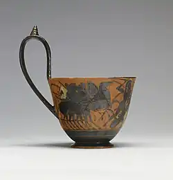 Czarnofigurowy kyatos etruski, ok. 500 p.n.e. (Muzeum Narodowe w Warszawie)[6]