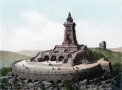 Kyffhäuserdenkmal powstał w latach 1890-1896 według projektu architekta Bruno Schmitza na ruinach Zamku Kyffhausen. Przedstawia cesarza Wilhelma I Hohenzollerna, siedzącego na koniu oraz cesarza Fryderyka I Barbarossę, siedzącego na tronie.