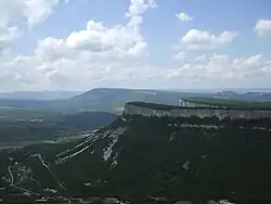 Nazwa oznacza "Dziewicza Twierdza". Twierdza powstała na plato skalnego cypla wznoszącego się wysokimi, urwistymi ścianami nad dolinami. Urwiska te chroniły osadę z trzech stron, natomiast z czwartej strony, wzniesiono kamienny mur obronny w najwęższym miejscu cypla. Mur miał 130 m długości i do 8 m szerokości u podstawy, posiadał dwie półokragłe baszty. W jego obrębie znajdowała się jedyna brama wjazdowa. Zbudowany był z bloków wapienia. Obszar cypla chroniony urwiskami i murem mierzył ponad 1000 m i do 250 m szerokości. Większa jego część nie była zabudowana, służąc jako miejsce schronienia okolicznej ludności i ich dobytku w razie najazdu wroga. Terytorium zabudowane koncentrowało się przy murze i obejmowało siedem kompleksów mieszkalnych, każdy z nich złożony z kilku budynków otaczających dziedziniec. Dalej od muru, w głębi cypla znajdował się wieloizbowy budynek, który jak się sądzi był domem dowódcy fortecy. Szacuje się, że stałych mieszkańców twierdzy było 60-80. Zachowała się także duża wykuta pieczara - cysterna i jedna wykuta pieczara będąca zapewne punktem obserwacyjnym i strażniczym. Zachowane są także ślady po tarasach pod hodowlę winogron. Data powstania fortyfikacji nie jest pewna, ale uważa się, że powstała ona pod koniec VIII w n.e. i istniała niezbyt długo. Po opuszczeniu twierdzy, na jej terytorium powstała kolejna sztuczna pieczara, zamieszkała przez prawosławnych mnichów pustelników. W XIV - XV w. istniała na zewnątrz muru obronnego niewielka cerkiew.