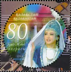 ![]() Wystawienie opery w Szymkencie, w centrum postać Kyz Żibek (2022) | |