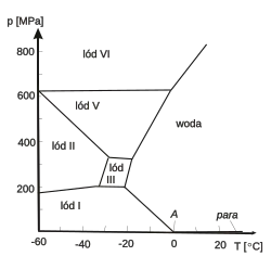 Lód – stan stały wody[2]; minerał z gromady tlenków o wzorze chemicznym H2O. Znaleziono co najmniej siedemnaście odmian tej substancji – faz termodynamicznych zależnych od ciśnienia i temperatury.