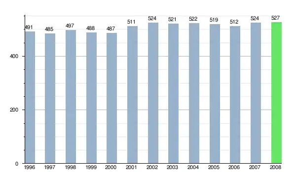 Według danych z dnia 31 grudnia 2012, wieś zamieszkiwało 565 osób, w tym 319 kobiet i 246 mężczyzn[7].