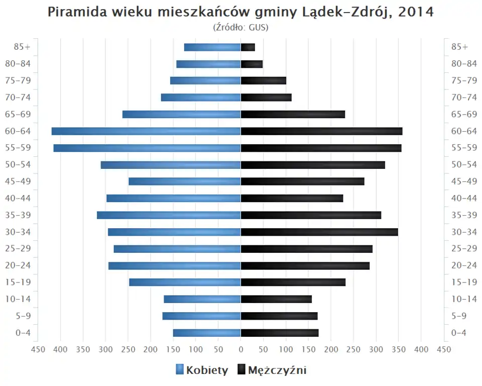 - Piramida wieku mieszkańców gminy Lądek-Zdrój w 2014 roku[24].