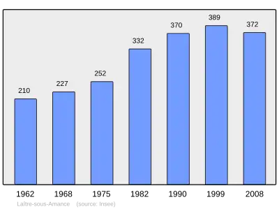 Według danych na rok 1990 gminę zamieszkiwało 370 osób, a gęstość zaludnienia wynosiła 72 osób/km² (wśród 2335 gmin Lotaryngii Laître-sous-Amance plasuje się na 687. miejscu pod względem liczby ludności, natomiast pod względem powierzchni na miejscu 998.).