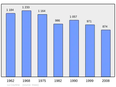 Według danych na rok 1990 gminę zamieszkiwało 1057 osób, a gęstość zaludnienia wynosiła 26 osób/km² (wśród 747 gmin Limousin La Courtine zajmuje 118. miejsce pod względem liczby ludności, natomiast pod względem powierzchni miejsce 74.).