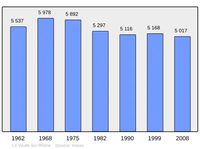 Według danych na rok 1990 gminę zamieszkiwało 5116 osób, a gęstość zaludnienia wynosiła 527 osób/km² (wśród 2880 gmin regionu Rodan-Alpy La Voulte-sur-Rhône plasuje się na 169. miejscu pod względem liczby ludności, natomiast pod względem powierzchni na miejscu 1143.).