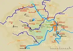 - ↑ Hubertus Ritzdorf: Römische Wasserleitungen am Mittelrhein. Hrsg.: Archäologische Denkmalpflege Amt Koblenz (= Archäologie an Mittelrhein und Mosel. Band 15). Landesamt für Denkmalpflege, Koblenz 2005, ISBN 978-3-929645-09-5