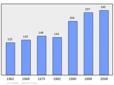 Według danych na rok 1990 gminę zamieszkiwały 204 osoby, a gęstość zaludnienia wynosiła 20 osób/km² (wśród 2335 gmin Lotaryngii Lachapelle plasuje się na 841. miejscu pod względem liczby ludności, natomiast pod względem powierzchni na miejscu 590.).