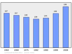 Według danych na rok 1990 gminę zamieszkiwały 144 osoby, a gęstość zaludnienia wynosiła 24 osoby/km² (wśród 2293 gmin Pikardii Lachaussée-du-Bois-d’Écu plasuje się na 853. miejscu pod względem liczby ludności, natomiast pod względem powierzchni na miejscu 784.).