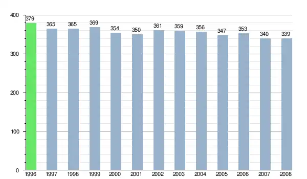Według danych z dnia 31 grudnia 2012 roku, wieś zamieszkiwało 325 osób, w tym 171 kobiet i 154 mężczyzn[6].