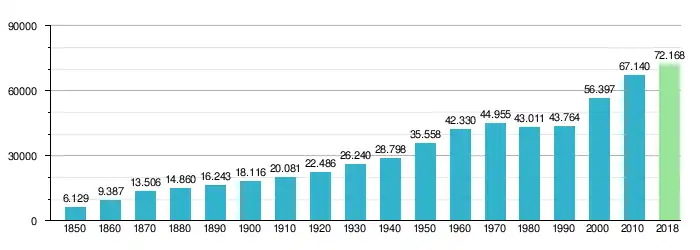 Poniżej przedstawiono zmiany liczby ludności miasta w latach 1850–2018[5][6].