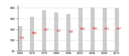 | Rok | 1959 | 1970 | 1979 | 1989 | 1996 | 2003 | 2008 | 2009 | 2010 |