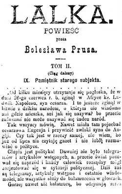 - ↑ Józef Bachórz Wstęp. W: Bolesław Prus: Lalka T. 1. Wrocław: Zakład Narodowy im. Ossolińskich, 1998, s. XXXIX. ISBN 83-04-04381-5.