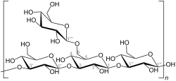Polisacharyd jest rozkładany przez kilka gatunków bakterii beztlenowych występujących w jelicie grubym człowieka. Bakterie te wytwarzają enzymy: laminarynazę (EC 3.2.1.6) oraz β-glukozydazę (EC 3.2.1.21)[4].