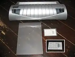 W przemyśle szklarskim proces laminowania szkła polega na sklejeniu za pomocą specjalnej folii dwóch lub wielu tafli szkła. Dzięki temu szkło jest bardziej wytrzymałe mechanicznie i w przypadku rozbicia, odłamki nie rozsypują się. Rodzaj użytej folii decyduje również o innych właściwościach szkła laminowanego (klejonego), np: przepuszczalność promieni UV. Szkło laminowane wykorzystuje się w budownictwie i w pojazdach, obiektach pływających oraz latających (szyby chroniące operatora i pasażerów).