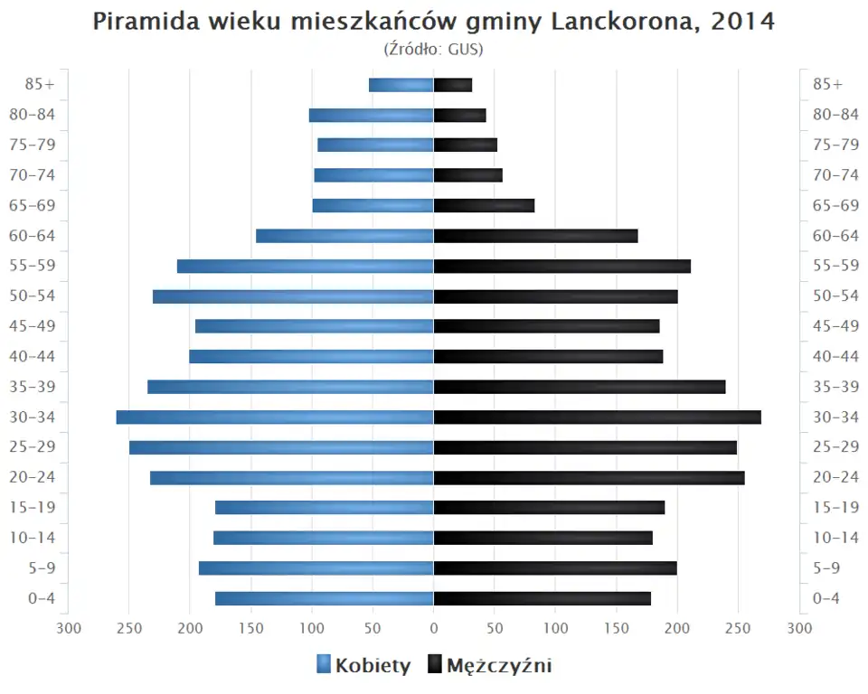 - Piramida wieku mieszkańców gminy Lanckorona w 2014 r.[4]