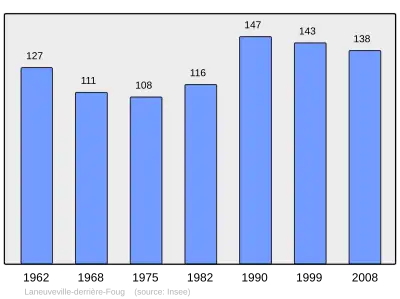 Według danych na rok 1990 gminę zamieszkiwało 147 osób, a gęstość zaludnienia wynosiła 130 osób/km² (wśród 2335 gmin Lotaryngii Laneuveville-derrière-Foug plasuje się na 898. miejscu pod względem liczby ludności, natomiast pod względem powierzchni na miejscu 1248.).