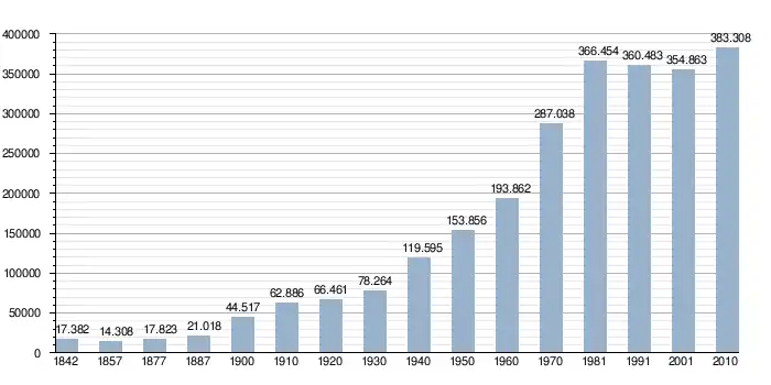 - Rozwój populacji centrum administracyjnego Las Palmas (1842-2010)