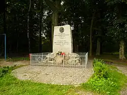 W 1907 roku pan Piegsa, kierownik szkoły w Brzeziu stał się inicjatorem powstania w lesie pomnika, który uczciłby wielkiego poetę. Jesienią tego roku głaz narzutowy znajdujący się pierwotnie niedaleko domu Jana Łatki w Pogrzebieniu przetransportowano na skraj lasu. Ważył on 21 ton[a]. Został na nim wykuty napis Dem Sänger des Waldes Joseph Freiherrn von Eichendorff – Hohenbriken 26.XI.1907 (pol. Piewcy lasu – baronowi Josephowi von Eichendorffowi, Brzezie 26 XI 1907). 26 listopada 1907 roku pomnik został uroczyście odsłonięty. W 1922 roku teren ten znalazł się w państwie polskim i chciano pomnik usunąć. Jednak plan nie mógł zostać zrealizowany, gdyż teren należał do miasta Racibórz. Ostatecznie pomnik został wysadzony jesienią 1945 roku przez nieznanych sprawców. Pomnik został odtworzony, a jego uroczyste odsłonięcie nastąpiło 6 maja 2006 roku[3].
