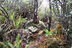 - subalpejskie lasy mgliste (subalpine cloud forest – SACF) i „elfie” lasy mgielne (“elfin” cloud forest – ECF) – z drzewami karłowymi (zwykle tylko do 1,5 m wysokości[4]), nad którymi występują już tylko formacje nieleśne.