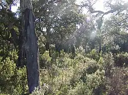Las zawsze zielony twardolistny – roślinność leśna występująca w klimacie podzwrotnikowym typu śródziemnomorskiego, charakteryzującym się ciepłymi i suchymi latami oraz deszczowymi i ciepłymi zimami, na żółtoziemach, czerwonych ziemiach (terra rosa) i glebach cynamonowych. W takich warunkach klimatycznych rozwinęła się w pokrywie roślinnej dominują gatunki o twardych, skórzastych liściach, umożliwiających przetrwanie okresów suszy (niekiedy igiełkowate listki i gruba kora). Charakterystycznymi terenami, na których rośnie las zawsze zielony, są: obrzeża Morza Śródziemnego, Kalifornia, Chile, południowa Afryka, południowo-wschodnia Australia. Skład gatunkowy jest zróżnicowany w zależności od miejsca występowania: w południowo-zachodniej Europie występuje wawrzyn, dąb korkowy oraz różne gatunki sosny, w Ameryce Północnej – sekwoje, daglezje, świerki, dęby, magnolie, choiny, jodły, żywotniki, w Ameryce Południowej – araukarie, w Australii – eukaliptusy oraz paprocie drzewiaste[1][2]. Znaczne powierzchnie w zasięgu lasów twardolistnych, często jako zbiorowiska zastępcze, zajmują formacje krzewinkowe i zaroślowe (makia, garig, palmitto – w basenie Morza Śródziemnego, chaparral i encinal – w Ameryce Północnej, fynbos w południowej Afryce[3].