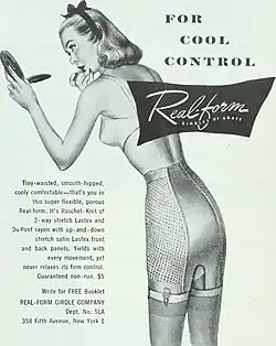 - ↑ Jane Farrell-Beck, Colleen Gau, Uplift: The Bra in America, University of Pennsylvania Press, 2002, s. 62-63, ISBN 0-8122-1835-3 (ang.).
