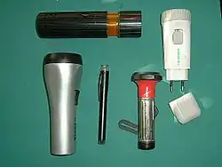 - 3,6 V – zasilane przez akumulatory litowo-jonowe o różnych rozmiarach (na przykład 18650, 14500). Produkowane były latarki zasilane baterią trzech szeregowo połączonych akumulatorów NiCd lub NiMH;