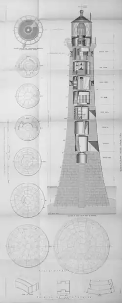 Zaprojektowana przez Jamesa Walkera, została zbudowana z granitu przygotowanego w Penzance, który został przetransportowany na Wolf Rock. Budowa trwała od 1861 do 1869 roku. Latarnia rozpoczęła pracę w 1870 roku.