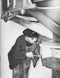 Latarnie morskie były w Kalifornii zwyczajowo obsadzone przynajmniej przez dwóch latarników, głównego (ang. head keeper) i jego pomocnika (ang. assistant keeper). Harmonogram dnia był ustalony w instrukcji służbowej (Instructions to Light-Keepers)[b], a służba nocna była dzielona na dwie zmiany. Pomocnik z reguły obejmował pierwszą zmianę, która trwała od zachodu słońca do około północy[28]. Najpierw czyścił soczewkę i uzupełniał olej w lampie oraz skracał albo wymieniał knot (ang. wick). Od angielskiej nazwy knota latarnicy nazywali siebie żartobliwie jako wickies („knociarze”)[29]. Następnie nakręcano mechanizm podobny do zegarowego, który poruszał soczewką wokół jej poziomej osi. W zależności od latarni wymagało to nawet dwudziestominutowego kręcenia korbą (patrz zdjęcie)[30]. Potem latarnik zapalał światło i przenosił się na resztę zmiany do położonej przeważnie piętro niżej wartowni (watchroom). Około północy pomocnika zmieniał główny latarnik, który po nadejściu poranka polerował miedziane i mosiężne elementy urządzeń i odkurzał optykę. Czynności te wykonywał w specjalnych lnianych butach, które zapobiegały przypadkowemu zarysowaniu soczewek. Po zakończeniu bieżącej konserwacji latarnik zaciągał zasłony chroniące urządzenia optyczne przed światłem słonecznym[28].