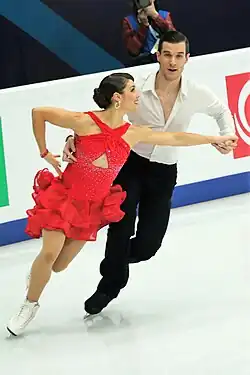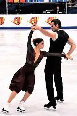![]() Laurence Fournier Beaudry i Nikolaj Sørensen na podium Skate America 2019 | |||||||||||||