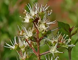 - Nieduże, pachnące, zebrane w szczytowe wiechy. Mają 4-działkowy kielich, koronę złożoną z 4 pofałdowanych płatków, (4)–8–(12) pręcików i pojedynczy słupek[6].