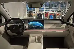 Kabina pasażerska została utrzymana w minimalistycznej estetyce z dominującymi jasnymi materiałami wykończeniowymi, na czele z 14,6-calowym ekranem dotykowym systemu multimedialnego na środku deski rozdzielczej[3]. Ponadto, wyświetlacz z cyfrowymi zegarami znalazł się przed kierowcą, z kolei dla pasażerów tylnego rzędu siedzeń przewidziano opuszczany ekran o przekątnej 15,6 cala[3]. Producent zastosował także 21-głośnikowy system audio, z kolei kanciasta kabina pasażerska umożliwiła przetransportowanie do 6 pasażerów w układzie siedzeń 2+2+2[3].