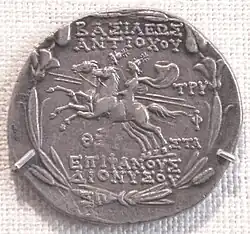 W okresie hellenistycznym wzorowana na monetach władców wschodnich i rozbudowana jednostronna legenda zawiera z reguły imię władcy[a] z tytułem (np. BAΣIΛEOΣ ΣEΛEΥKOΥ w Syrii) i z przydomkami[3], częstokroć też monogramy urzędnika lub mennicy, a niekiedy litery oznaczające serię emisyjną lub nawet datowanie według lokalnej rachuby czasu.