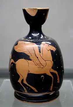 - ↑ Wraz z aryballosowym stanowił dwie formy ograniczone do ceramiki attyckiej (Henri Metzger: La Céramique grecque. Paris: PUF, 1973, s. 19).