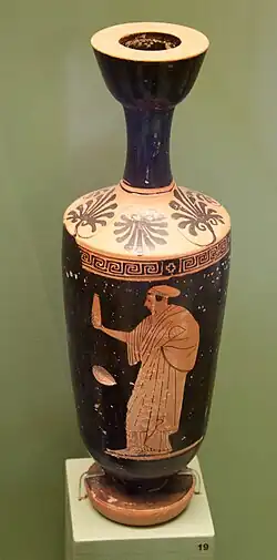 - ↑ W dawniejszej polskiej literaturze zwane lecytem (lecytką) – por. S.J. Gąsiorowski: Malarstwo starożytne w zbiorach Czartoryskich w Krakowie. Wybór zabytków. Kraków 1952, s. 5-6.