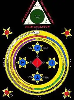 - ↑ Pieczęć tajemna Salomona. W: MacGregor Mathers, Aleister Crowley: Goecja wg Aleistera Crowleya. Wrocław: Wydawnictwo FOX, 2000, s. 137-138. ISBN 83-913114-5-7.