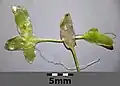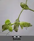 Drobne lancetowate człony pędowe (długość – 2-6 mm, czasem większe – do 1 cm). Pędy są spłaszczone i kształtem przypominają liście. Każdy człon jest opatrzony długim trzonkiem i pojedynczym korzeniem. Rozmnaża się głównie wegetatywnie przez członkowanie pędów, które następnie zwykle się nie rozdzielają i tworzą sieć krzyżujących się członów polikormonu.