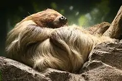 Leniuchowiec dwupalczasty[11], leniwiec dwupalczasty[12] (Choloepus didactylus) – gatunek ssaka z rodziny leniuchowcowatych (Choloepodidae). Wiedzie samotny, skryty, raczej nocny, spokojny tryb życia wśród drzew lasów deszczowych Ameryki Południowej, żywi się pokarmem roślinnym, występuje też u niego koprofagia. Większość czasu spędza, odpoczywając, zawieszony pod gałęziami drzew bądź siedząc na nich. Po 10-miesięcznej lub dłuższej ciąży samica rodzi jedno młode. Nie zagraża mu wyginięcie.