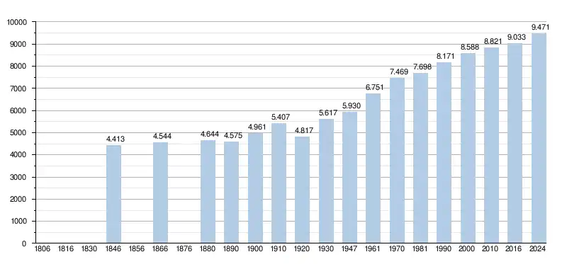 - Źródła: NIS, od 1806 do 1981= według spisu; od 1990 liczba ludności w dniu 1 stycznia