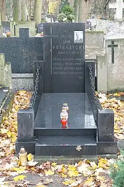 - ↑ Cmentarz Stare Powązki: LEON PETRAŻYCKI, [w:] Warszawskie Zabytkowe Pomniki Nagrobne [dostęp 2019-12-18].