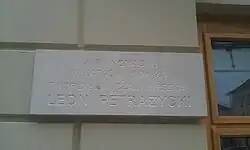 - ↑ 12 kwietnia 2024 r. w budynku Collegium Iuridicum I odsłonięto plakietę z wizerunkiem prof. Leona Petrażyckiego. Wydział Prawa i Administracji Uniwersytetu Warszawskiego, 2024-04-12. [dostęp 2024-04-21].