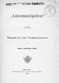 - 1 2 3 4 Judah Leib Pinsker: Auto-Emancipation. [w:] Wikisource [on-line]. [dostęp 2012-08-23]. (ang.).