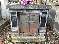 - ↑ Lista osób zasłużonych pochowanych na Cmentarzu Rakowickim (1803–1939). W: Karolina Grodziska–Ożóg: Cmentarz Rakowicki w Krakowie. Kraków: Wydawnictwo Literackie, 1987, s. 141. ISBN 83-08-01428-3.