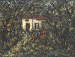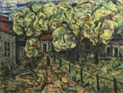 - Entraygues, pejzaż z żółtym drzewem, 1942, olej na kartonie