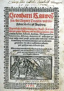 - ↑ Rauwolf, Leonhard | Encyclopedia.com [online], www.encyclopedia.com [dostęp 2022-01-20].
