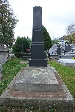 - ↑ Księga aktów zejść rzym.-kat. Sanok 1878–1904. T. H. Sanok: Parafia Przemienienia Pańskiego w Sanoku, s. 17 (poz. 124).