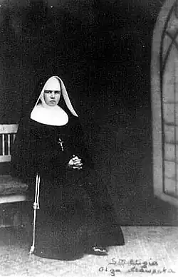 - ↑ Podaję za: Waldemar Rozynkowski, Porucznik Leopodyna Stawecka (1896-1933) - w zakonie siostra Eligia. Szkic biograficzny w: Nad Bałtykiem: w kręgu polityki, gospodarki, problemów narodowościowych i społecznych w XIX i XX wieku: księga jubileuszowa poświęcona profesorowi Mieczysławowi Wojciechowskiemu: zbiór studiów / pod red. Zbigniewa Karpusa, Jarosława Kłaczkowa, Mariusza Wołosa., Toruń 2005, s. 403.